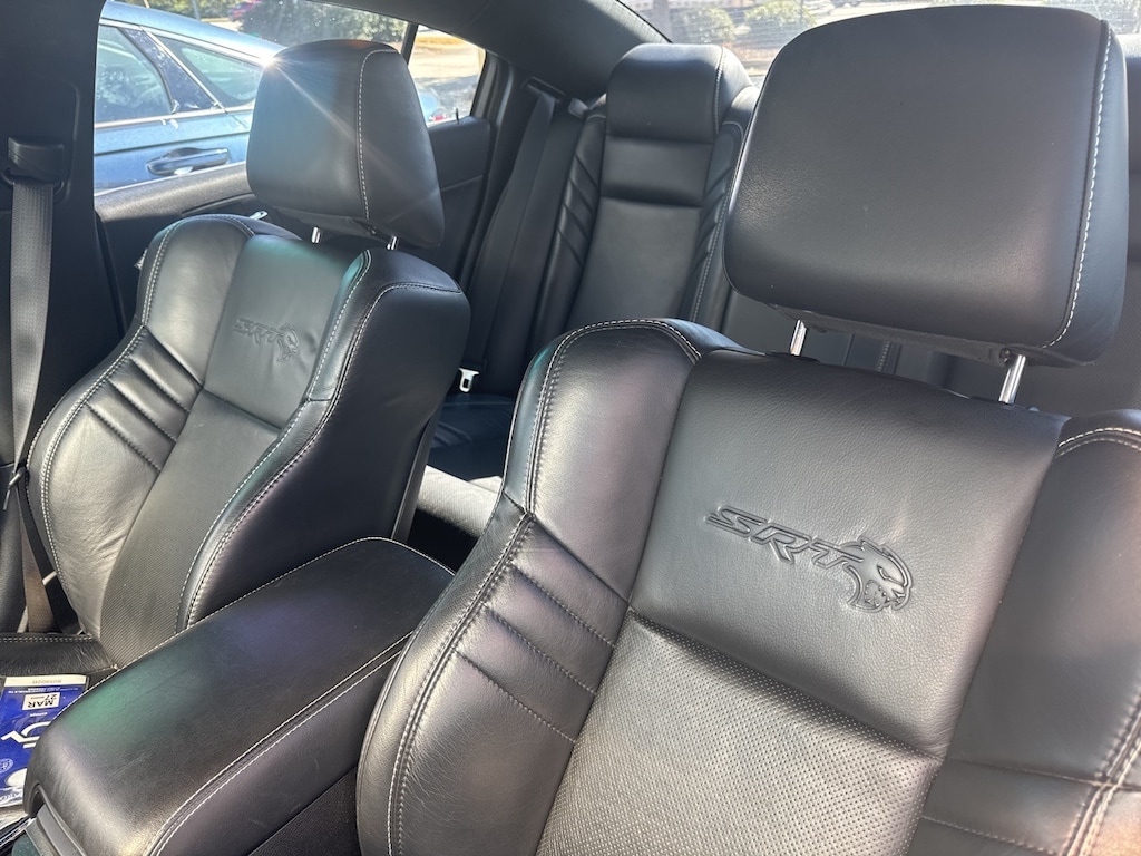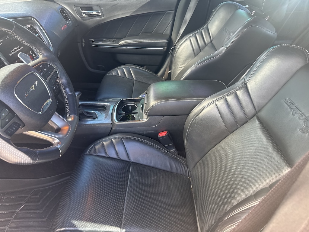 Power Convenience Group (Power Driver/Passenger 4-Way Lumbar Adjust, Power Front Driver/Passenger Seats, and Power Tilt/Telescope Steering Column), Quick Order Package 23T, Black Leather, 4-Wheel Disc Brakes, 6 Speakers, ABS brakes, Air Conditioning, Alloy wheels, AM/FM radio: SiriusXM, Anti-whiplash front head restraints, Apple CarPlay/Android Auto, Audio memory, Auto-dimming door mirrors, Auto-dimming Rear-View mirror, Automatic temperature control, Brake assist, Brake Calipers - Gunmetal Gray, Bumpers: body-color, Compass, Delay-off headlights, Driver door bin, Driver vanity mirror, Dual front impact airbags, Dual front side impact airbags, Electronic Stability Control, Emergency communication system: SiriusXM Guardian, Floormats Front/Rear Left, Floormats Front/Rear Right, Four wheel independent suspension, Front anti-roll bar, Front Bucket Seats, Front Center Armrest, Front dual zone A/C, Front reading lights, Fully automatic headlights, Garage door transmitter: HomeLink, Heated 2nd Row Seats, Heated door mirrors, Heated Front Seats, Heated front seats, Heated rear seats, Heated Steering Wheel, Heated steering wheel, Hellcat Logo Laguna Leather Seat, High intensity discharge headlights: Bi-Xenon, Illuminated entry, Knee airbag, Leather Shift Knob, Leather Trim Seats, Low tire pressure warning, Memory seat, Navigation System, Occupant sensing airbag, Outside temperature display, Overhead airbag, Overhead console, Panic alarm, ParkView Rear Back-Up Camera, Passenger door bin, Passenger vanity mirror, Power 4-Way Driver Lumbar Adjust, Power 8-Way Driver Seat, Power door mirrors, Power driver seat, Power steering, Power Sunroof, Power windows, Radio data system, Radio: Uconnect 4C Nav w/8.4" Display, Radio/Driver Seat/Mirrors Memory, Rear anti-roll bar, Rear reading lights, Rear window defroster, Remote keyless entry, Security system, Speed control, Speed-Sensitive Wipers, Split folding rear seat, Spoiler, Sport steering wheel, Steering wheel mounted audio controls, Tachometer, Telescoping steering wheel, Tilt steering wheel, Traction control, Trip computer, Variably intermittent wipers, Ventilated Front Seats, Ventilated front seats, Wheels: 20" x 9.5" Matte Vapor SRT Aluminum, and Wheels: 20" x 9.5" SRT Lowgloss Black Performance.
