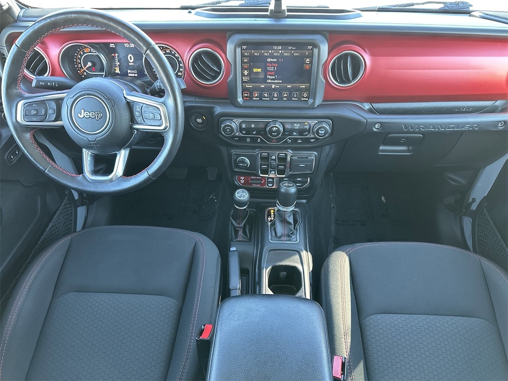 Advanced Safety Group (Advanced Brake Assist, Auto High Beam Headlamp Control, and Full Speed Forward Collision Warning Plus), Cold Weather Group (Heated Front Seats and Heated Steering Wheel), LED Lighting Group (Daytime Running Lamps LED Accents, Front LED Fog Lamps, LED Premium Reflector Headlamps, and LED Taillamps), Safety Group (Blind Spot & Cross Path Detection and ParkSense Rear Park Assist System), Steel Bumper Group (Steel Front Bumper and Steel Rear Bumper), Trailer Tow & Aux Switch Group (240 Amp Alternator, 7 & 4 Pin Wiring Harness, 700 Amp Maintenance Free Battery, Auxiliary Switches, and Class II Receiver Hitch), Navigation System, 4-Wheel Disc Brakes, 4.10 Rear Axle Ratio, 9 Speakers, ABS brakes, Air Conditioning, Alloy wheels, AM/FM radio: SiriusXM, Apple CarPlay/Android Auto, Auto-dimming Rear-View mirror, Automatic temperature control, Aux Battery, Black 3-Piece Hard Top, Brake assist, Compass, Delay-off headlights, Driver door bin, Driver vanity mirror, Dual front impact airbags, Dual front side impact airbags, Electronic Stability Control, Emergency communication system: SiriusXM Guardian, Engine Oil Cooler, Freedom Panel Storage Bag, Front anti-roll bar, Front Bucket Seats, Front Center Armrest w/Storage, Front Differential Electronic Lock w/Axle Disconnect, Front dual zone A/C, Front fog lights, Front reading lights, Fully automatic headlights, Garage door transmitter, Heated door mirrors, Illuminated entry, Integrated Off-Road Camera, Integrated roll-over protection, Low tire pressure warning, No Soft Top, Non-Lock Fuel Cap w/o Discriminator, Occupant sensing airbag, Outside temperature display, Panic alarm, ParkView Rear Back-Up Camera, Passenger door bin, Passenger vanity mirror, Performance Suspension, Power door mirrors, Power steering, Power windows, Premium Cloth Low-Back Bucket Seats, Radio data system, Radio: Uconnect 4C Nav w/8.4" Display, Rear anti-roll bar, Rear reading lights, Rear Window Defroster, Rear Window Wiper/Washer, Remote keyless entry, Security system, Speed control, Split folding rear seat, Steering wheel mounted audio controls, Stop-Start Dual Battery System, Tachometer, Telescoping steering wheel, Tilt steering wheel, Traction control, Trip computer, Variably intermittent wipers, Voltmeter, Wheels: 17" x 7.5" Machined w/Black Pockets, and Wheels: 17" x 7.5" Machined/Painted Black.